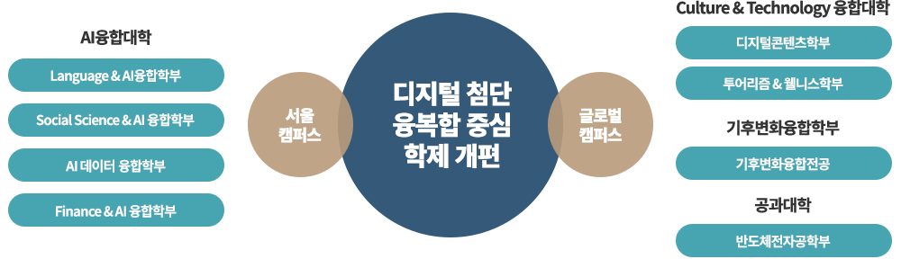 Culture & Technology융합대학, 기후변화융합학부, 반도체전자공학부 등의 신설 대학/학부는